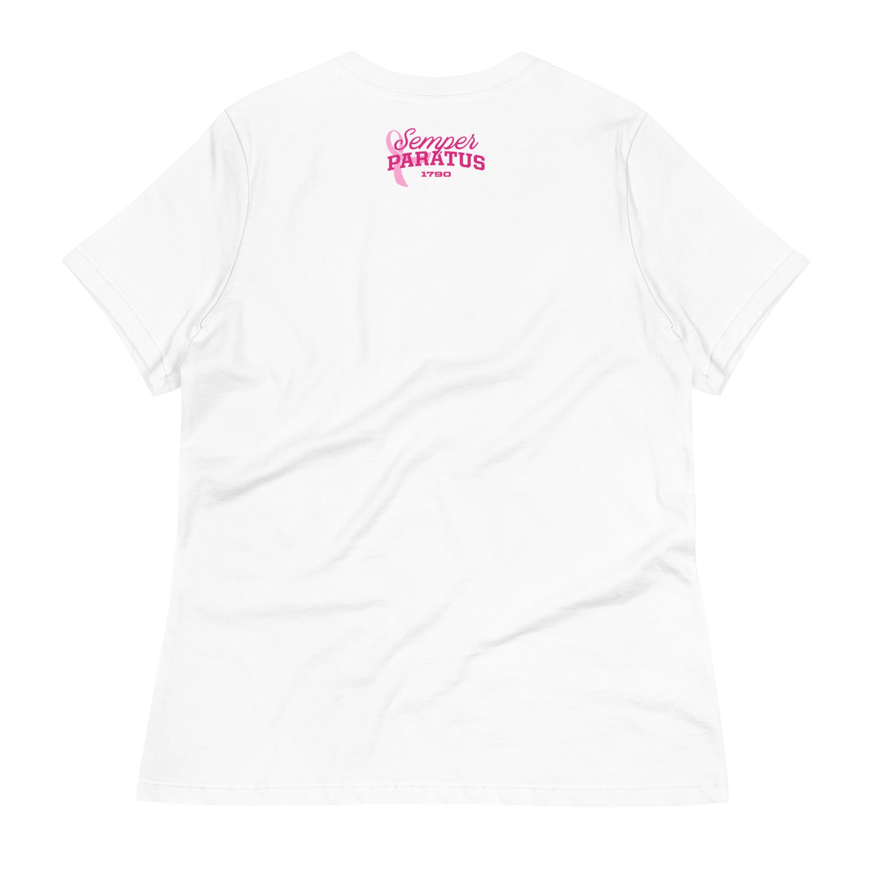 The front features our classic Puddle Pirate logo reimagined in pink, while the back displays a powerful pairing — “Semper Paratus” and the pink ribbon — symbolizing our readiness to support, remember, and fight alongside those affected.