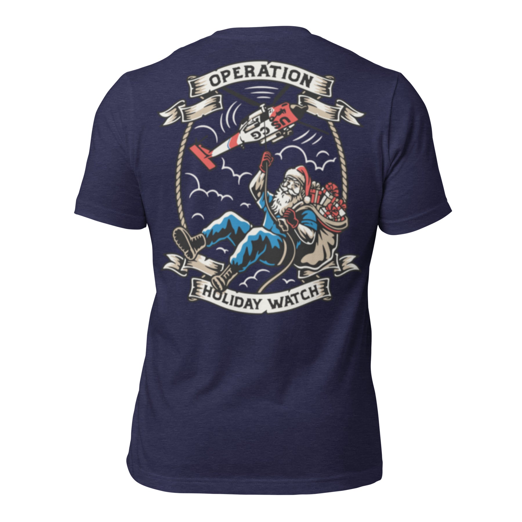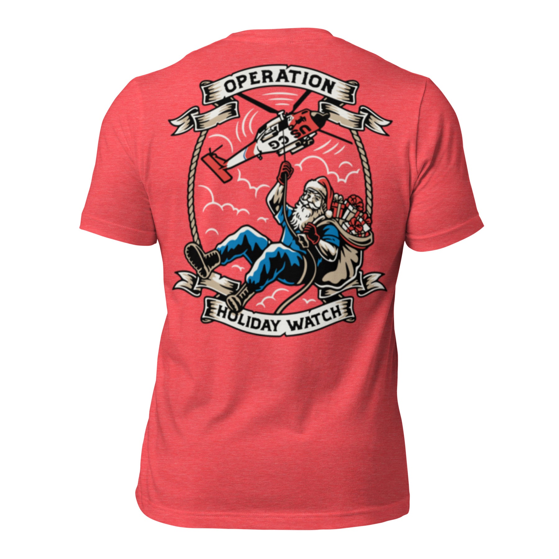 “Operation Holiday Watch” is in full swing — and this design is the uniform for it. Featuring jolly old St. Nick repelling down from a Coast Guard Jayhawk. Whether you’re on shore leave or heading out for a holiday watch, wear it proudly and show that you’re not just counting down to Christmas — you’re standing watch for coasties everywhere.